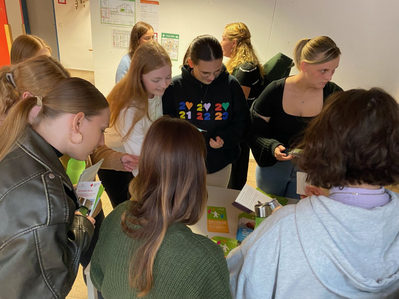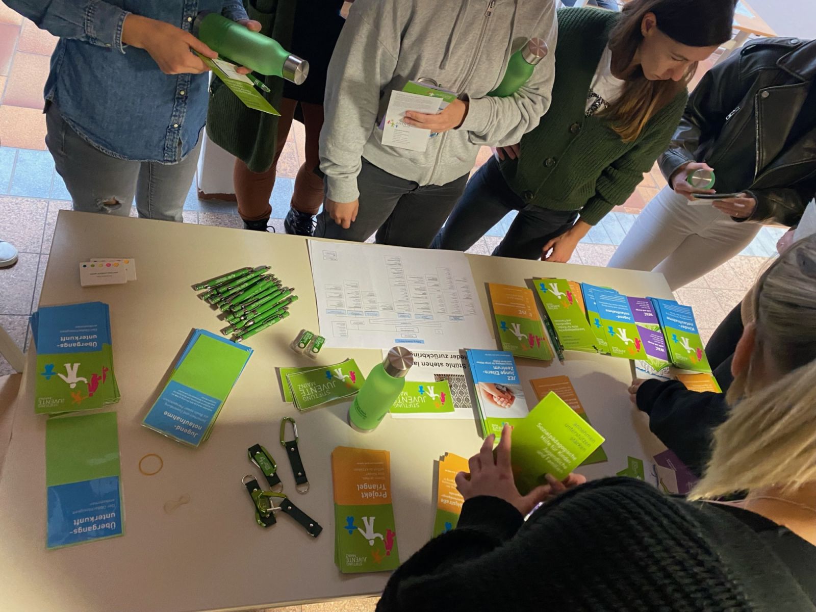 Hierzu veranstaltete sie in der zweiten Oktoberwoche sogenannten „Trägertage“. Soziale Einrichtungen hatten die Möglichkeit, sich in kurzen Vorträgen im Rahmen des Unterrichts zu präsentieren. Im Anschluss gab es Gelegenheit zur Auslage von Informationsmaterial und zum Austausch mit den Schüler:innen. Die Stiftung Juvente hat gerne an dieser tollen Aktion teilgenommen und viele neue Interessent:innen kennengelernt. Wir haben den Rahmen als sehr gelungen wahrgenommen und haben uns gefreut, so viele junge und interessierte Menschen kennenlernen zu dürfen.